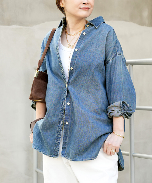 Lee別注!デニムシャツが大好評につき追加予約がスタート。 Deuxieme Classeのこだわりの詰まったデニムシャツ。 大人の女性のカジュアルコーディネートを美しく見せるデニムシャツ。 デニム オン デニムでも合わせて着られるように、ライトオンスのデニムシャツをデザイン別注。 ウエスタン型が基本のデニムシャツからあえて胸ポケットを無くし、ヨークもシンプルなデザインに落とし込んだ大人のデニムシャツ。 襟に高さを出すことによって、ボタンを開けた時も女性の首元がきれいに見えるようにこだわりました。 ニットやスウェットと重ねて着用をしても、レイヤードのバランスが絶妙なシャツ。 カフスの開き位置をあえて通常より内側に開けることで手首が覗き、アクセサリーを効かせた品のあるスタイリングを楽しむことができるのも魅力。 ********************* 透け感:なし 裏地:なし 伸縮性:なし 光沢感:なし 生地の厚さ:普通 ********************* 【スタッフ着用コメント】 《STAFF.H》 30代後半/身長:153cm/体型:普通/普段サイズ:S/着用サイズ:フリー サイズ感:オーバーサイズ過ぎない、程よいゆとりが大人の体型にマッチする1枚。 素材感:加工感もハード過ぎず、品のあるカジュアルスタイルが楽しめます。 着心地:ライトオンスのデニム生地なので柔らかく軽い着心地で、ボタンを閉めてシャツとしても羽織としても使いやすいです。 ********************* ※同一商品:26050500701010(若干の仕様変更がある場合がございます。) ※加工によりダメージ具合やサイズ感には若干の個体差がございます。 ※こちらの商品は雰囲気を出す為にダメージ加工が施されております。お洗濯を繰り返し、着込むほどに変化する色や加工をお楽しみください。 また、ダメージ具合やサイズ感には個体差もございますので予めご了承ください。 ※取り扱いについては、商品についている洗濯表示にてご確認下さい。 ※照明の関係により、実際よりも色味が違って見える場合があります またパソコン・スマートフォンなどの環境により、若干製品と画像のカラーが異なる場合もございます。 ※商品の色味は、商品アップ画像をご参照ください。 ※こちらの商品はお一人様1カラー・1サイズにつき1点までの購入とさせていただきます。 本体:洗濯機洗い(弱)