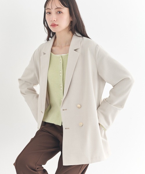 羽織るだけで整う、大人のきれいめスタイル。 落ち着いた雰囲気の中に金ボタンがさりげない華やかさを添えるジャケットです。ダブルボタンのデザインが上品な印象を与え、シンプルなコーディネートもきちんと感のあるスタイルに仕上げてくれます。 テーラードカラーが顔まわりをすっきりと見せ、洗練された大人の雰囲気を演出します。 程よくゆとりのあるシルエットで動きやすく、インナーを選ばずさっと羽織れるのも嬉しいポイントです。 パンツスタイルでオフィスコーデに取り入れるのはもちろん、デニムやスカートと合わせれば程よくカジュアルダウンした着こなしも楽しめます。 便利なポケット付きで実用性もあり、日常のお出かけから通勤スタイルまで幅広く活躍します。 シンプルで合わせやすく、さまざまなコーディネートに取り入れやすい万能なアイテムです。 透け感[ややあり] 生地の厚さ[普通] 光沢感[なし] 伸縮性[なし] 裏地[なし] ポケット[あり] ※画像はサンプル品を使用しているため、実際の商品とカラー、仕様、加工、サイズが若干異なる場合がございます。予めご了承ください。 ※モデル着用画像は光の当たり具合で色味が違って見える場合がございます。商品の色味は物撮りの画像をご参照ください。 ● earth music&ecology ● 「私」を、もっと好きになる。 今の時代に寄り添う、 女性らしさをかたちにしたスタイルで、 すべての大人の女性の ときめく毎日を応援します。 ▼ 商品のお気に入り登録がおすすめです ▼ 商品ページ内の「♡」ハートマークをクリック。完売時の再入荷や、最後の1点の通知、コーディネート画像がアップされたとき、お得なお値下げの際の通知を受ける事ができます。 【お知らせ】ページでも通知が確認できます。