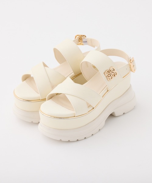 ~NICECLAUP 2026 early summer Collection~ 厚底ソールでスタイルアップが叶うクロスベルトサンダル。 安定感のあるボリュームソールで歩きやすく、デイリー使いしやすいデザインに仕上げました。 クロスデザインのベルトが足元をすっきり見せてくれ、さりげなく付いたロゴモチーフもポイント。 ガーリーコーデからカジュアルコーデまで幅広いスタイリングに合わせやすいアイテムです。 ※サンプルでの撮影のため、実際のものと仕様や色が異なる場合があります。 ※室内、室外での撮影のため実際より明るく映っていたり、暗く映っていたりする場合がございます。 ※品質表示を必ずご確認下さい。 【商品のお気に入り登録】 完売カラーの再入荷や、ラスト1点のお知らせ、セールの通知を受け取ることができます。 【ブランドのお気に入り登録】 新作入荷や再入荷情報など、ブランドの情報をいち早くお届けします。 ぜひご登録ください♪ 2026SS