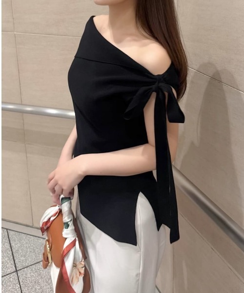 【ウォッシャブル】【着回しやすさと洗練さを兼ね備えたアシメネックドレープニット】 【Design/Styling】 昨年も大人気だったワンショルドレープニットがリバイバル。 今年は取り外し可能なショルダーリボンをややワイドな幅に設定して、より印象的に仕上げました。 首元はデコルテがのぞくアシンメトリーな折り返しデザイン。 ワンショルのほか、オフショルダーやノースリーブとしても楽しめ、さまざまなシーンや着こなしにマッチします。 ほんのりシェイプさせたウエストから緩やかに広がるシルエットもこだわりのひとつ。 右サイドにはスリットを入れて、タックインもタックアウトも決まりやすいバランスに仕上げています。 素材は、さらりとした心地よい肌触りのレーヨン・キュプラ混。 総針で適度に肉感を持たせながら編み上げ、高級感の安心感のある着心地を叶えました。ウォッシャブルでお手入れもイージー。 色展開は3色。使いやすいWHT、鮮やかなトーンがキャッチーなBLU、色気のあるBLKからお選びいただけます。 ※照明の関係により、実際よりも色味が違って見える場合があります。 またパソコン・スマートフォンなどの環境により、若干製品と画像のカラーが異なる場合もございます。予めご了承ください。 商品の色味は、商品単品画像をご参照下さい。 ※商品画像はサンプルのため、色味やサイズ等の仕様に変更がある場合がございますので、予めご了承ください。