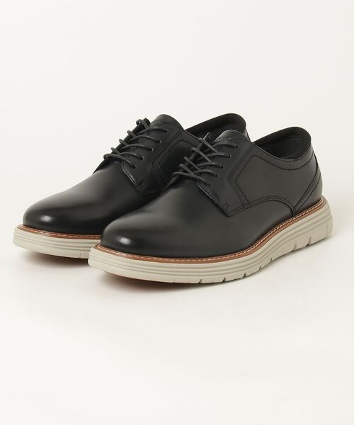 \オン・オフ問わずマルチに活躍!万能ビジカジシューズ/ ビジネスカジュアルを軸に、きれいめな休日スタイルまで幅広く対応する「Cambridge Ease(ケンブリッジ イーズ)」。 モデル名はボストンの地名に由来し、上品さと軽快さを併せ持つ一足に仕上がっています。すっきりと端正な印象で、ジャケットスタイルの足元を程よく引き締めつつ、チノやデニムなどのカジュアルにも自然に馴染む万能シューズです。 アッパーには質感のあるレザーを採用。きちんと見える佇まいを保ちながら、日常使いしやすいバランス感を追求しました。ミッドソールには軽量なEVAを組み合わせ、クッション性の良さで歩行時の負担を軽減。そしてかかと部分の衝撃吸収素材「truTECH(トゥルーテック)」が着地時の負担を軽減します。さらに耐久性を考慮し、接地部にはラバーパッドを貼り付けることで、日々の通勤や移動が多いシーンでも安心感のある履き心地を支えます。 カラーは3色展開。オールブラックは足元を引き締める精悍な印象でビジネスシーンにベストマッチ。ブラウンは柔らかく上品な雰囲気でビジカジ?休日まで合わせやすい万能カラー。ネイビーは程よい抜け感で差がつく色味でグレー/ベージュ系のパンツとも好相性です。 「革靴らしい端正さ」と「ROCKPORTの快適性」を、毎日のスタイルに取り入れたい方へ。オン・オフを横断して活躍する、頼れるNEWモデルです。 ブランドカラー名:ネイビー/靴幅:M ※素材に適したクリーム・クリーナー等のお手入れ製品をご使用ください。 <ROCKPORT TECHNOLOGY(ロックポートテクノロジー)> ■truTECH(トゥルーテック) 歩くときにかかる踵への衝撃を吸収、グラつきを抑えて歩行時の安定感を高めます。 ------------------------------ ■ROCKPORT(ロックポート) ロックポートは、1971年にアメリカ・ボストンで生まれたレザーシューズブランドです。 「クッション性」「衝撃吸収力」「屈曲性」などを追求した独自のテクノロジーを搭載し、アクティブなライフスタイルを送る人々へ『妥協しない快適な履き心地とスタイルを提供する』 をコンセプトに幅広いシューズを展開しています。