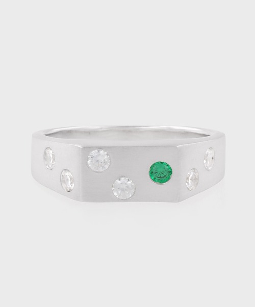 マットな質感に輝きを添えて。ストーンが目を惹く洗練シグネットリング ■デザイン・ディテール ・トレンド感のあるクラシカルな「シグネットリング(印台リング)」をベースにした上品なフォルム ・ランダムに配置されたキュービックジルコニアが、手元で美しくきらめくデザイン ・クリアストーンの中に1粒だけ配されたグリーンのストーンが、ブランドらしい遊び心のあるアクセントに ・リングの内側には「Paul Smith」のロゴをさりげなく刻印 ■素材・着け心地 ・ベースには、程よい重厚感を持つ上質なシルバー(銀)素材を使用 ・全体に細かな「ヘアライン加工」を施すことで、ギラつきを抑えたマットで落ち着いた質感に ・カットが美しいジルコニアの輝きと、マットな地金とのコントラストが絶妙なバランスを生み出します ・なめらかな指通りで、しっかりとした存在感がありながらも快適な着け心地です ■スタイリング ・シンプルなTシャツやスウェットに合わせるだけで、手元に洗練された大人のアクセントをプラス ・ギラギラしすぎないマットな質感なので、キレイめなジャケットスタイルなどにも好相性 ・お手持ちの腕時計や、他のシルバーアクセサリーとの重ねづけにもスッと馴染みます ・いつものカジュアルスタイルを、ワンランク上の着こなしにアップデートしてくれるアイテムです ■ギフト ・上品な輝きと上質な仕上がりで、大人の男性にふさわしい高級感溢れるリング ・大切なパートナーやご家族への誕生日、記念日の特別なプレゼントとして絶対に喜ばれるアイテムです ・毎日頑張る自分への、ちょっと特別なご褒美ジュエリーとしても大活躍します ________________________ [お買い物をお楽しみ頂くために] □商品のお気に入り登録 完売カラーの再入荷通知やラスト1点の通知など、商品情報をお届けします。 □ショップ・ブランドのお気に入り登録 新商品や再入荷など、いち早くブランドの最新情報をお届けします。 ________________________ ※付属の「取り扱いご注意」をご確認下さい。 ※使用後は柔らかい布で汗や汚れをふき取り、直射日光や埃(ほこり)を避け、湿度の低い所で保管してください。 ※素材の性質上、消毒液及びジェル、ハンドソープなどにより変色することがありますのでご使用の際はご注意ください。 ________________________ [お買い物をお楽しみ頂くために] □商品のお気に入り登録 完売カラーの再入荷通知やラスト1点の通知など、商品情報をお届けします。 □ショップ・ブランドのお気に入り登録 新商品や再入荷など、いち早くブランドの最新情報をお届けします。 ________________________