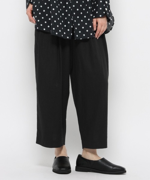 SUNAOKUWAHARAとstudio CLIPが初コラボレーション デザイナー桑原直氏がstudio CLIPのためにデザインした特別なシリーズ ーーー 【素材】 天然素材ならではの粗野感としなやかさを兼ね備えたリネンレーヨン生地を使用。 春から秋まで長く着用できる素材感です。 ※杢ベージュはリネンカス残しになっており、節のようなものが見られます。 【デザイン】 リラックス感のあるタックパンツ。 全体的にゆったりとしたシルエットながら、ルーズに見えすぎないのでシーンを選ばず着用可能です。 ファスナー開きで、ウエストは後ろゴムのイージー仕様◎ フラップ付きコインポケットがアクセントになっています。 ーーー 【スタイリング】 同シリーズのシャツやカットソー合わせがおすすめ。 合わせるトップスを変えることで秋まで長くお楽しみいただけます。 【SUNAOKUWAHARA】 「SUNAOKUWAHARA(スナオクワハラ)」は、デザイナー桑原 直氏によるブランドです。 「深化することによって生まれる新しい価値観」を表現する、強さと美しさを備えた「強く自由になれる服」を展開。知的で大人なムードが特徴です。 桑原氏は、三宅デザイン事務所を経て、1993年に株式会社イッセイミヤケより「I.S.sunao kuwahara」を立ち上げ、2003年に株式会社エイ・ネットから「sunaokuwahara」をスタートさせました。2016年春夏コレクションより「SUNAOKUWAHARA」を設立し、現在は純度の高いオリジナリティを追求し続けています。