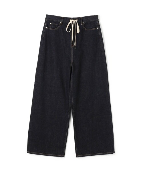 岡山にあるメーカーの12オンスのインディゴデニム素材を使用したパンツ。 デニム原料のコットン繊維がしっかりと紡がれているので、糸の目が細かくなめらかな着心地を実現しています。 膝の伸縮などの際にも糸が伸びにくく膝抜けしにくいのも嬉しいポイントです。 ワイドシルエットでリラックス感のある一着。 ストリング仕様ながらもウエストの寸法を通常サイズに近く作ることでシルエットをキープし、穿きやすい設計にしています。 フロントには〈Edition〉オリジナルの刻印が施されたネオバーを配した、細部にまでこだわりの光るベーシックアイテム。 ※商品の色味は、商品単体または素材アップ画像をご確認ください 2026SS商品 店舗にお問い合わせの際は、下記の商品番号をお申し付けください。 商品番号:51-04-61-04016 ※※インディゴデニムについて※※ インディゴ染料を使用した素材を使用しています。 染色の特性上、新しいうちは特に色落ちしやすく、他のものと擦れ合うと色移りします。 新しいうちは白や淡い色の服・バッグ・ベルト・椅子など身の回りの品への色移りにご注意下さい。 その他、お取扱い上の注意をよくご確認の上、ご使用をお願いします。