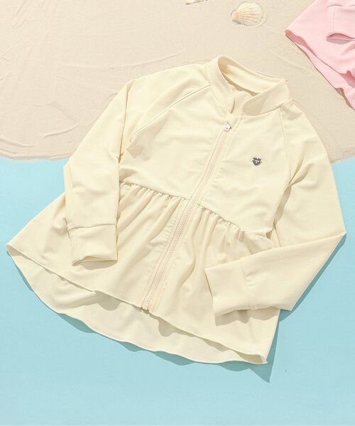 【BREEZE:SWIM Collection 2026】 裾のフリルが可愛いラッシュガード。 胸元にはハート型のタグをあしらい、さりげないワンポイントに。 ウエストからふわっと広がるシルエットで、可愛らしさはもちろん 体型カバーも叶えてくれる嬉しいデザインです! 水着の上からさっと羽織って着用するのもおすすめ◎ プールや海など、夏のレジャーシーンにぴったりのラッシュガードです。 【取り扱い表示】 最高液温40℃以下で手洗い、漂白剤使用禁止、色物は同系の色と一緒に、洗濯後直ちに取出し、タンブル乾燥不可、日陰で吊り干し、アイロン禁止、商業ドライクリーニング不可 【ご注意事項】 こちらの商品はUV加工(紫外線遮蔽率90%以上)が施されております。 ※画像の商品はサンプルです。 実際の商品と仕様、加工、サイズが若干異なる場合がございます。 ※商品により多少の誤差が生じる事がございます。あらかじめご了承下さい。 ※ご使用のパソコンやブラウザの環境により、実際の色とは多少異なる場合がございます。 ※モデル着用写真についてはイメージの為、実際の商品とカラーや仕様が異なる場合がございますので、商品画像をご覧ください。 【 BREEZE -ブリーズ- 】 WEAR A HAPPY SMILE こだわりと遊び心のつまった、着ると「笑顔」のWEAR、「着たい」がいっぱいのSHOP そんなHAPPY SMILEに出会える場所がBREEZE ▼気になる商品をお気に入り登録 ハートマークをクリックして『お気に入り登録』がオススメです! 商品のお気に入り登録をすると、[再入荷][残り1点][セール情報]を受け取れます。 また、『F.O.Online Store』を、お気に入り登録すると [新作アイテム][再入荷]の情報をいち早く受け取れます♪