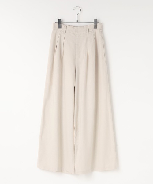 ■素材■ リネンとレーヨンとポリエステルを絶妙にブレンドした別注糸を使用する事で、軽やかでクリアな表面感と柔らかな風合いを表現しました。 吸水速乾、接触冷感、UVカットなど多彩な機能で快適に着こなせます。 ■デザイン■ ウエストにタックの入った、ゆったりとしたワイドシルエットで、リラックス感がありながらもコーディネートの主役になる一本です。 前あきデザインで着脱しやすく、後ろウエストはゴム仕様のため、程よくフィットし快適な穿き心地です。 ■スタイリング■ 同素材のアイテムとのセットアップでの着用を楽しめます。柄を引き立てるため、トップスは無地やシンプルなデザインがおすすめ。 コンパクトなトップスやタックインでバランスよく着こなせます。 サンダル合わせで涼しげに、スニーカーでカジュアルダウンするのも◎