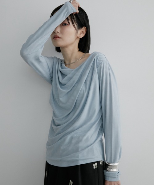 スタイリングに抜け感をプラスしてくれる リブドレープトップス ■デザイン 衿元に流れるドレープデザインが、女性らしいニュアンスを引き立てる一枚。 シンプルながらも表情のあるシルエットで、着るだけでさりげない華やかさをプラスしてくれます。 肩を落とせばオフショルダーとしても着用可能。 デコルテを綺麗に魅せながら、程よくラフな雰囲気に仕上がります。 ドレープがあることで身体のラインを拾いすぎないのもうれしいポイント◎ いつものスタイリングをさりげなくアップデートしてくれる、 オンオフ問わずデイリーに使いやすいアイテムです。 ■素材感 ドレープ感が綺麗にでる柔らかいカットソー素材。 細かなリブが上品な印象です。 伸縮性があるのでオフショルで着用しても、しっかりフィットしてくれます。 肌なじみが良く、ロングシーズンご着用いただけるトップスです。 ■スタイリング 一枚で華やかなデザインなので、シンプルなボトムスと合わせても こなれた雰囲気に仕上がります。 スラックスパンツやスカートと合わせればオフィスシーンで活躍。 肩を落としてデニムと合わせれば大人のカジュアルスタイルが完成します。 ----------------------- 透け感/ややあり 光沢感/なし 伸縮性/あり 裏 地/なし 厚 み/普通 ----------------------- ※自宅洗濯可能(単独手洗い) ※濃色品は、摩擦などにより他の衣類に色が移ることがありますのでご注意ください。 ※詳しいお手入れ方法は商品タグをご参照ください。 【SNS掲載情報】 @auntmaries.official 公式Instagramアカウントにて新作情報をはじめ 多彩なコンテンツを掲載しております。ぜひご覧くださいませ。 【商品のお気に入り登録】 完売カラーの再入荷通知やラスト1点の通知 プライスダウンの通知も受け取ることができます。 ぜひご登録ください◎ 【ブランドのお気に入り登録】 新商品や再入荷など、 ブランドの情報をいち早くお知らせします! ぜひご登録ください◎ ※ご注意※ ・屋外の光や照明の当たり具合で、実際の商品の色味と カラー別画像の色味に若干の違いが発生する場合がございます。 ・詳細画像と併せてご確認の上、ご注文いただきますようお願い致します。
