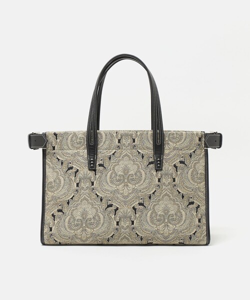 エフォートレスなムードを纏う新作トートバッグ ■デザイン 横長フォルムが目を引くの新作「BATH」。 間口の両サイドのベルトは、開き具合を自在に調整できる実用的なデザイン。 内側には前後に4つのスラッシュポケットを備え、ブランドの特徴的な二股のハンドルは肩掛けも快適です。 荷物の出し入れがしやすく、すっきりと見せる引き締まったラインなど、シーンに合わせて表情を変えられるのが魅力。 ■コーディネート モノトーンの装いには、ジャカード柄が洗練された存在感を放ち、通勤にもぴったり。 カジュアルなデニムとシャツを合わせても、都会的なニュアンスを添えてくれます。 <A VACATION(ア ヴァケーション)> 吹上肖氏によるバッグブランドで2018年秋冬スタート。 「ファッションの一部として、洋服とのスタイリングに自由に制約なく合わせられるバッグコレクションを作りたい。」 女性にとって使い勝手が良い機能性やサイズ感を備えながら、少し振り切った個性とディテールを駆使して情緒的にバッグを仕上げています。 熟練の職人を擁する日本のクオリティーは、洋服をデザインするような奔放なアイディアを美しい商品に仕上げています。 【注意事項】 ※商品に「取り扱い上の注意書き」、「洗濯表示」がございます場合は、使用前に必ずご確認ください。 ※商品画像は、光の当たり具合やパソコンなどの閲覧環境により、実際の色味と異なって見える場合がございます。あらかじめご了承ください。 ※商品の色味の目安は、商品単体の画像をご参照ください。 店舗へお問い合わせの際は、全国のUNITED ARROWS各店舗まで下記の品名/品番をお申し付けください。 品名:A/V BATH ONYX 品番:17325000078