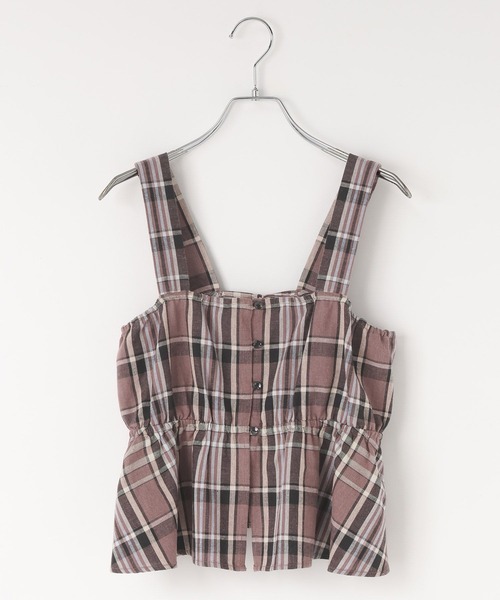 ■素材■ リネンとレーヨンとポリエステルを絶妙にブレンドした別注糸を使用する事で 軽やかでクリアな表面感と柔らかな風合いを表現しました。 吸水速乾、接触冷感、UVカットなど多彩な機能で快適に着こなせます。 【機能】 ・UVカット ・接触冷感 ・吸水速乾 ■デザイン■ オリジナルのチェック柄が可愛いビスチェ。 胸下にゴムが通っているので着心地も着脱も楽々。 後ろはリボン開きにしているのでサイズの微調整も可能。 ■スタイリング■ 同素材のパンツと合わせて サロペット見えするセットアップでの着用がおすすめ◎。