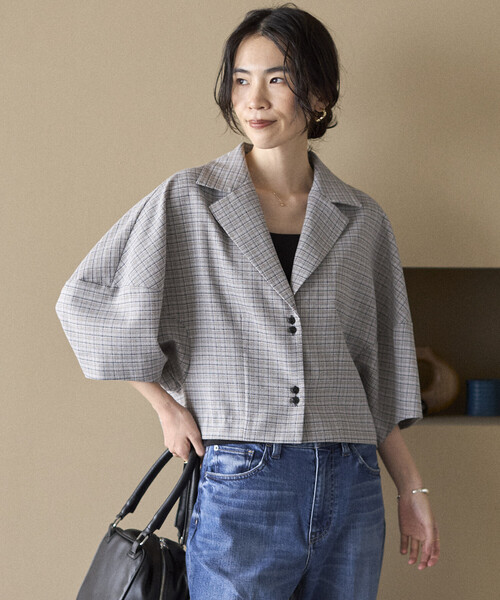 2026 Spring & Summer item シャツ感覚で軽やかに羽織る。 抜け感をつくるクロップドシャツジャケット。 ●シャリ感のあるカラミチェック素材を使用した、涼しげなシャツ ●通気性の良い軽やかな素材で、春夏シーズンにぴったりの着心地 ●立体的なフォルムと程よいボリューム感で、コーディネートの主役になる一着 ●やや短めの丈感で、羽織るだけで今っぽい抜け感のあるバランスに ●デコルテをきれいに見せてくれる開襟デザインで、涼しげな印象 ●ランダムに配置された配色シェルボタンがさりげないアクセント ●細かなチェック柄と馴染みの良い配色で、無地感覚で着回しやすいデザイン ●シワになりにくく、洗濯後も乾かすだけできれいな状態を保ちやすい素材 ●セットアップスタイルで、軽いオケージョンシーンにも対応 おすすめコーディネート 同素材のカラミチェックカーヴィーパンツと合わせれば、統一感のあるセットアップスタイルが完成します。 Iラインワンピースの上から羽織れば、程よくきちんと感のある大人カジュアルコーデに。 デニムやワイドパンツと合わせて、軽やかな抜け感スタイルもおすすめです。 ※同素材でセットアップでの着用も可能です。 ■商品名:カミラチェック Iラインワンピース ■品番:3413234400010 ■商品名:カラミチェック カーヴィーパンツ ■品番:3442234400030 ※掲載画像の商品の色味は、屋外や屋内の光の照射や角度により実物と色味が異なる場合がございます。 また表示のサイズ感と実物は若干異なる場合もございますので、予めご了承ください。 ※着用、お取り扱いの際は、商品についている品質表示とアテンションタグを必ずご確認下さい。 【Firsthand / ファーストハンド】 Fashion , Sustainable , Art をテーマに、デザイン性やクォリティー、モノ作りなど、クリエイティブを重視したサステナブルなコンセプトストア。 ここでしか出会えないブランドやアイテム、ここでしかできない実体験、新しくスタイリッシュなカルチャーとファッションをここから発信していきます。 フリークスストア等を構えるデイトナインターナショナルから新たに発信されるブランドです。