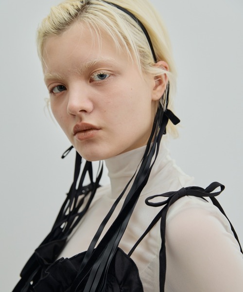 tape ribbon head band テープリボンカチューシャ 動くたびに揺れるロングリボンが目を惹くカチューシャ。 華奢なカチューシャに細いリボンをあしらい、甘さとモード感をバランス良くプラスしました。 さっと付けるだけでコーデのアクセントになり、シンプルなヘアスタイルも一気にこなれた印象に。 リボンは長めにデザインしているため、後ろ姿まで印象的に仕上がります。 カジュアルスタイルはもちろん、ワンピースなどフェミニンなコーデにも相性◎ オールシーズンで使える万能ヘアアクセサリーです。 -------------------- 【PERNA(ペルナ)】 エアリーな素材をふんだんに使い女性らしさを象徴しつつ、デザインはインパクトを与え芯の強さを表現。 愛されたお洋服がいずれvintageとしてさらに、受け継がれること願い提案します。 【ブランドディレクター/ Aya】 Instagramで日々の着回しコーディネートを投稿しているAya。 高身長でも楽しめるロングワンピースコーデや重ね着コーデを得意としており、自身の好きやおしゃれのたのしさを追求し発信し続けている。 【 商品のお気に入り登録 】 完売カラーの再入荷通知やラスト1点の通知、プライスダウンの通知も受け取ることができます。 【 ブランドのお気に入り登録 】 新商品や再入荷など、ブランドの情報をいち早くお知らせします。 ※ご注文いただいた予約商品のお届け時期確認は、注文履歴ページより行えます