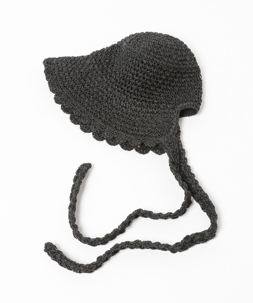 ■デザイン■ クロシェ編みの透け感が涼しげな印象のつばヒロザツザイハット。 軽い日よけにもオススメ。 首辺りから垂れるリボンが今年らしいスタイリングに使えます。