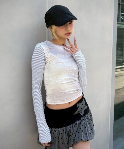 トレンド感たっぷりのY2K×ガーリーなお出かけコーデ。この春持っておきたいマストアイテム。 ▪アイテムポイント 前後にプリントを施した儚く淡いクロップド丈ロンT☆ コンパクトなシルエットと程よいフィット感で、ボディラインをきれいに見せてくれる一枚◎ 袖と襟元だけ細かめのボーダー柄を施した切り替えデザインがポイント♪ シンプルながらもメリハリがあり、さりげなく目を引くディテールに◎ ボディ部分には繊細なプリントをあしらい、さりげない存在感をプラス! 主張しすぎないデザインなので、ガーリーにもカジュアルにもマッチ! やわらかなパステル系の色味が、ゆめかわムードを演出♪ 韓国ファッションらしい抜け感と、バレエコア・ウィッシュコアの繊細な雰囲気を取り入れた今っぽいトップス◎ ▪シーン 甘さとカジュアルさを兼ね備えたデザインで、デートコーデにもぴったり♡ やわらかいカラーリングが好印象を与えてくれる♪ 写真映えするデザインなので旅行シーンにもおすすめ◎ さらっと着られる着心地でワンマイルコーデやデイリー使いにも活躍! ラフすぎないバランスで通学コーデにも取り入れやすく、幅広いシーンで着回せる万能アイテム☆ ▪スタイリング バレエコアスタイルなら、チュールスカートやリボン小物と合わせてとことんフェミニンに♡ プリーツミニと合わせれば王道ガーリーコーデが完成◎ デニムやカーゴパンツと合わせて甘辛ミックスにするのもおすすめ! y2kムード漂うハイウエストボトムと合わせれば、クロップド丈を活かしたスタイルアップコーデに♪ 韓国ファッションを意識したレイヤードスタイルにも相性抜群! 甘めにもカジュアルにも振れる、着回し力の高い主役ロンT◎ ※着用画像はフラッシュの加減で実際の製品と色味等が異なる場合がございますので、詳細のズームアップ画像をご確認ください。 ※サイズは、測定方法と測定者によって誤差があります。素材に応じて1cm~3cmまでの差も生じます。予めご了承ください。 【Unopened gift/アンオープンドギフト】 「unopened gift for you」は可能性=未開封のギフトをテーマにしたドリーミーガーリーストリートブランド。 アクセサリーとウェアを展開するインスタ発ブランド。 【SELECT BRANDS】 東京、大阪、名古屋、福岡にショップを構えるセレクトショップ "Never mind the XU”(ネバーマインドザエックスユー/エックスユー)と”Chikashitsu +”(チカシツプラス)のバイヤーが韓国、中国をはじめとしたアジア圏やヨーロッパなど世界各国から多彩なデザインを持つ新鋭ブランドを独自の感覚でセレクトしました。 ユニセックス、ストリート、モード、カジュアル、綺麗目、シンプル、リラックススタイルなど様々なスタイリングをお楽しみいただけます。 “自分らしさ” の表現が必ず見つかる。そんなラインナップで一期一会の高揚を感じながらお買い物をお楽しみください。 【気になる商品はお気に入り登録がおすすめ】 ▼商品をお気に入り登録!(♥マークをクリック) 完売商品の再入荷やラスト1点の通知、セール開始時にお知らせ! ▼"XU/Chikashitsu+"をお気に入りブランドに登録! 新商品や再入荷など、ブランド最新情報をいち早くお知らせ! 是非、ご活用いただきお買い物をお楽しみください◎