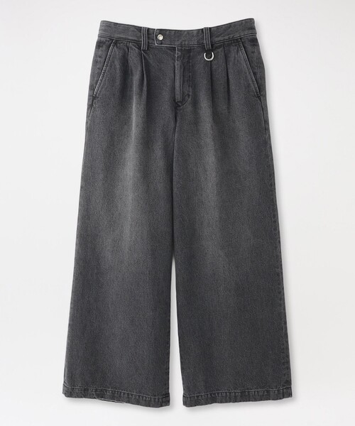 ボリューム感のある2タックデニムバギーパンツ 【素材】 重すぎずしなやかな11オンスの綿100%のブラックデニムとインディゴデニムを使用しています。 【シルエット/デザイン】 膝から裾にかけて広がるバギーシルエット。 前後にブラストを入れることで立体感と陰影をつけ、バイオ加工をかけることでリジッドデニムと比較してソフトな履き心地で、色落ちが自然で、ヴィンテージ感がありつつ上品に仕上げました。 薄いベージュのオーバーダイを加えることでより柔らかな印象にしました。 前後のポケット口、裾のエッジダメージ加工を施すことで、ナチュラルな経年変化を感じさせ、リアルな古着感を演出しデザインアクセントにしました。 ウエスト部分に入った2本のタックが、腰回りに程よいゆとりを生み出し、動きやすく快適な履き心地です。 ウエストの後ろがゴム仕様になっているので、フィット感がありつつ着脱しやすくなっています。 ドット釦やDカンといったシルバー付属使いもデザインポイントです。 【スタイリング/その他】 シャツと合わせたきれいめミックスカジュアルスタイルやオーバーサイズのスウェットやニットと合わせた大人ナチュラルスタイルがオススメです。 【お手入れ方法】 こちらの商品は、ご家庭での洗濯が可能です。 ━━━━━━━━━━━━━━━━━━━━━━━━━━ お買い物をお楽しみ頂くために <商品のお気に入り登録> 完売カラーの再入荷通知など、お得な情報をお届けします。 <注意事項> この商品はサンプルでの撮影を行っています。 実際の商品とイメージが異なる場合がございます。 撮影環境により、光の当たり具合で色味が違って見える場合があります。あらかじめご了承下さい。