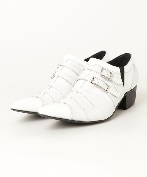 【DESIGN】 足元から放たれる、研ぎ澄まされた個性と存在感。TORNADO MARTより、3種類の異素材が織りなすアートのような一足が登場。 スムースレザーの洗練さ、エンボスレザーの力強さ、そしてエナメルレザーの艶やかさ。それぞれの表情が複雑に切り替わり、カッティングとステッチが織りなすアシンメトリーな美しさは、まさにオリジナリティの極み。 2本の存在感あるベルトが、足元にエッジィなアクセントをプラス。さらに、内側に配されたZIPが、デザインの奥行きと機能性を両立させます。 シャープなポインテッドトゥでモードに昇華。足元に宿る圧倒的なオーラが、あなたの個性を最大限に引き出します。 サイズ表記 S:約25~25.5cm M:約26~26.5cm L:約27~27.5cm
