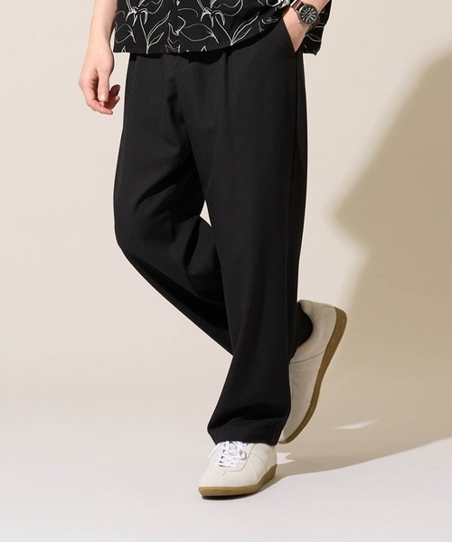 ◆多機能素材を使用したワイドイージースラックス◆ 【デザイン】 リラックススタイルに最適な大人のイージーワイドテーパードパンツの登場です。 ヒップ周りにゆとりを持たせながら程よくゆるやかにテーパードをさせた大人のワイドパンツに仕上げました。 ストレッチ性もあり、ウエストイージー仕様のためカジュアルシーンからきれいめシーンにも大変オススメです。 1本持っているだけで簡単にトレンドコーデにチェンジができるボトムです。 【素材】 高見えするメランジ感が特長的なポリエステル麻ストレッチ素材を使用。 麻の独特なメランジ感とやや落ち感がある、きれいめな風合いのある素材感がポイントです。 速乾性があり、毛玉になりにくく、イージーケア、ご自宅の洗濯機で気軽に洗えるため、デイリーユースにご着用頂けます。 【スタイリング】 同素材のジャケットを合わせたセットアップスタイルが今季らしい着こなしです。 また、ゆとりのあるデザインのため、カットソー、シャツなど様々なアイテムに合わせられる万能アイテムです。 きれいめスタイルからカジュアルスタイルまで幅広く合わせられます。 トップスをタックインしたスタイルもオススメです。 ---------------- 着用シーズン 春:◎ 夏:〇 秋:〇 冬:〇 ---------------- 透け感:なし 裏地:なし 伸縮性:あり 光沢感:なし 生地の厚さ:普通 ---------------- ≪お気に入り登録機能の使い方≫ ■商品のお気に入り登録(ハートマークをクリック) 再入荷通知や値下げ等、お得なご案内を受けることができます。 ---------------- ※商品画像は、光の当たり具合やパソコンなどの閲覧環境により実際の色味と異なって見える場合がございます。 商品の色味の目安は商品単体の画像をご参照ください。