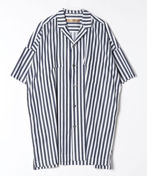 オーバーサイズの半袖シャツ。 上着としても着ていただけるユニセックスのフリーサイズ。 上質で美しい光沢感があり、綺麗な発色のストライプシャツ。 コンパクトコットンロンドンストライプ とは 高品質な80Sコンパクト糸を糸本数350本も打ち込んで贅沢に織り上げたシャツクロスは糸に毛羽が無いため表面が非常に滑らかで鮮やかに発色し、高い強度とシルクのような上品な光沢感を備えた最高級素材。 コンパクト糸とはコンパクトスピニングという特殊な紡績技術(繊維の束が撚られる直前に表面の毛羽を糸の内側に巻き込む技術)で製造された通常のコットン糸よりも均一で繊維密度の高い(compact)丈夫で美しい高品質糸。 太めに配置したオリジナルロンドンストライプ柄。 表示に従い手洗い可能。 【Robes&Confections/ローブス&コンフェクションズ】 デザイナー・土屋郷。 1996年に文化服装学院を卒業後、ヨウジヤマモトにてパタンナーとしてのキャリアを築き、2003年に独立しブランドを立ち上げる。 テーラーの起源である18世紀後半にまで遡り、仕立て服が作業着だった当時の機能性や装飾に着目。 ブランド名はヨーロッパに初めて既製服が登場した頃の既製服メーカーの呼称に由来。 【お買いものをお楽しみいただく為に!】 ▼商品のお気に入り登録 完売カラーの再入荷通知や、ラスト1点の通知、セールの通知も受け取ることができます。 ▼ブランドのお気に入り登録 新商品や再入荷など、いち早くブランドのお得な情報を受け取ることができます。
