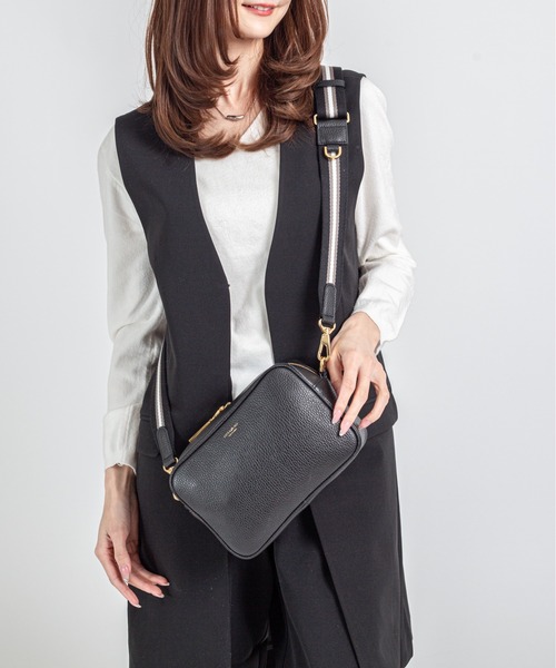 装いにさりげない個性を添える、上品なカメラバッグ。 アイビースタイルを思わせる配色のショルダーストラップがアクセントになった、 VIOLAd’ORO(ヴィオラドーロ)のカメラバッグ。本体にはシュリンク型押しを施したイタリアンレザーを使用。 柔らかさのある質感で手に馴染みやすく、細かなシボが傷を目立ちにくくしてくれるため、日常使いにも安心の素材です。 すっきりとしたスクエアフォルムが上品な印象を与え、カジュアルからきれいめまで幅広いスタイリングに自然と溶け込みます。 コンパクトな見た目ながら、長財布やスマートフォン、ポーチなどの必需品が収まるサイズ感。 開閉はダブルファスナー仕様で、中の荷物をスムーズに出し入れできます。 ショルダーストラップは長さ調節ができ、肩掛けや斜め掛けなどスタイルに合わせて使用可能。 また、はDカンを備えており、キーケースやフラグメントケースなどを取り付けて持ち歩くことも可能です。 日常の装いにさりげないアクセントを添える、使い勝手の良いレザーショルダーバッグです。 <商品仕様> 開閉:ファスナー開閉 内側:オープンポケット×1、ファスナーポケット×1 サイズ:横21×縦15×マチ7cm ショルダーストラップ:長さ調節可能(Dカン付き) 重さ:410g(ショルダーストラップ込み) 素材:牛革(イタリアンシュリンクレザー) 原産国:日本製 VIOLAd'ORO(ヴィオラドーロ)|時を超えて愛される、大人女性のためのバッグブランド イタリア語で「紫(Viola)と金(Oro)」を意味するVIOLAd'ORO。ミラノで出会った1940年代の紫と金の掛け時計から名付けられました。 60年以上の時を刻んでいるにもかかわらず、今なお新鮮で美しいその佇まい。 使うほどに愛着が湧き、時を重ねるごとに自分のスタイルに欠かせない存在へと育っていってほしい。そんな哲学がブランド名そのものに込められています。 上質な素材と丁寧な日本の縫製技術を礎に、トラディショナルなベースに旬のエッセンスを織り交ぜたデザインを展開。 可愛らしさを残しつつも、凛とした強さと女性らしさを併せ持つ大人の女性に、長く寄り添えるアイテムをお届けしています。 《商品の取り扱いに関するご注意》 ・ハンドメイド商品の為、サイズの誤差がある場合がございます。 ・天然皮革を使用している為、色むらや小さなキズ・スレ・凹みなどが見られることが御座いますが革の個性としてご理解ください。 ・または生前からのキズやスジなどが残っている場合が御座いますが、こちらは不良品では御座いませんので天然素材の風合いとしてご了承下さいませ。 気になる方はご購入お避け頂けましたらと思います。 ・高温多湿や、摩擦、濡れによる色移りにお気をつけください。 ・照明の関係により、実際よりも色味が違って見える場合があります。 またパソコン・スマートフォンなどの環境により、若干製品と画像のカラーが異なる場合もございます。予めご了承ください。