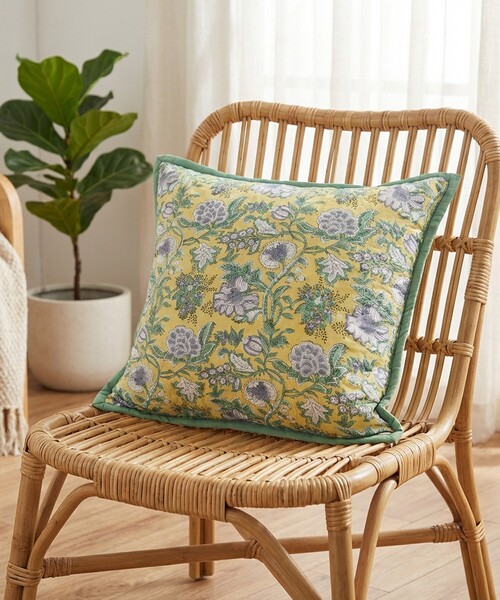 新しい季節、いつもの部屋に“やわらかさ”を。 ●気分で使い分けできる2WAYデザイン ナチュラルなボタニカル柄と、すっきりとしたストライプを表裏で楽しめるリバーシブル仕様 ●やさしい肌触り インド綿100%のやさしい肌ざわりで、お部屋にぬくもりとやすらぎをプラス ●伝統のブロックプリント技法 インドの職人による手仕事ならではの、風合いが魅力 ●45×45cmの使いやすい定番サイズ ソファやベッド、床にもしっくり馴染む万能サイズ ●ファスナー付きでお手入れ簡単 カバーの取り外しもラクラク。 ※こちらの商品はカバーのみとなり、中材クッションは含まれません。 お取り扱い上の注意 ・本品は手作りによる製法の為、色味の個体差・色むら・プリントのずれ等が生じる場合がございます。 ・生産工程や染料などの影響により特有の匂いがすることがございます。気になる場合は風通しの良い場所で陰干ししてください。 ・染色の性質上、摩擦、水濡れ、発汗等により、色移りする場合がございます。 ・洗濯時に色落ちする場合がございますので、淡色のものと分けて、漂白剤や蛍光増白剤入りの洗剤の使用は避けて洗ってください。 ・長時間濡れたまま放置すると移染するおそれがございます。 ・生地の特性上、洗濯後多少縮むことがございます。 ・直射日光やライトに長時間さらされますと退色するおそれがございます。