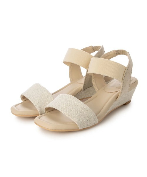 生地雑材マテリアルがシーズンムードを高めるサンダル 同色で合わせたゴムと生地雑材が大人っぽさを感じるデザイン こなれたキチンと感とカジュアルな雰囲気を併せ持つ1足に仕上げました 足当たりの良いソフトなゴムストラップは程よく足首にフィットするので安心の着用感 袋縫いで薄めパッドを中に入れてあるので指あたりソフトです 程よいウエッジヒールで大人な着こなしにピッタリ 歩行の衝撃を和らげてくれるふわふわクッション仕様の中敷きで、快適な履き心地を実現 ふわふわクッションはスムース合成皮革仕様になり足裏もさらっとお手入れも楽々 デイリーはもちろん、リゾートなど夏の旅行にもぴったりな一足 【STAFF着用サイズ感】 ※個人の感想になります <通常23.5cm・Mサイズ着用 甲普通~高め・幅普通~高め> Mサイズで通常の23.5センチの大きさに感じました。 ゴムのフィット感がよく、しっかりと足につく安心感があります。 ※画像の商品はサンプルです。 お届けする商品に仕様・サイズ等の変更が生じる場合がございます。 予めご了承ください。