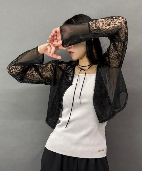 【異素材MIXシアーブラウス】 【Fabric】 シアー感のあるレース×メッシュなどの異素材のMIX素材 【Design】 モダンな花柄レースと異素材使いがおしゃれなショート丈のブラウス。 サイドシルエットがきれいな裾のラウンドデザインが◎ 長めの袖丈が華奢見えポイントに。 【Styling】 カットソーや薄手ニットと合わせてレイヤードコーデ、タンクトップやキャミソール合わせで清涼感ある羽織りブラウスに。モード感あるデザインアイテムとしてコーディネートの主役になる一枚です。 ------------------------- ■透け感:あり ■裏地:なし ■伸縮性:なし ■光沢感:なし ■生地の厚さ:薄い ------------------------- ※着用スタッフ身長172cm ※掲載画像の商品の色味は、 撮影場所や光の当たり具合などにより色味が異なって見える場合がございます。 商品の色味は、生地アップの画像をご参照ください。 また、お客様のお使いのPC・スマートフォン等のモニター環境などにより色味が異なって見える場合がございます。予めご了承の上ご注文ください。 ☆★お買い物をお楽しみいただく為に★☆ ★商品のお気に入り登録 完売カラーの再入荷通知や、ラスト1点の通知、 セールの通知も受け取ることができます。 ★ブランドのお気に入り登録 新商品や再入荷等、ブランドのお得な情報を いち早く受け取ることができます。