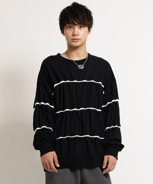 MILKBOY 2025 WINTER ▪身頃にリブを配し、ギャザーのように寄せた立体的なデザインが、シンプルながらも個性を際立たせます◎ ▪後ろの首元にはブランドロゴの刺繍を配置 ▪身幅は広めでゆったりとしていますが、着丈がすっきりとしているため、インナーにシャツを取り入れたコーデもおすすめです! ~ Colors ~ A,サックス / B,TOPグレー / C,ブラック ~ Size ~ 身幅 63㎝ / 着丈 70㎝ ~ Recommended styling ~ ▪ASSYMETRY パンツ (code : 98714747) ▪クラシカル ネックレス (code : 98714776) ▪DOUBLE COLLAR シャツ (code : 98714742) ▪リバーシブルフード (code : 98714781) model:西村悠里(STARDUST PROMOTION inc.) 身長:174㎝ 着用:C,ブラック
