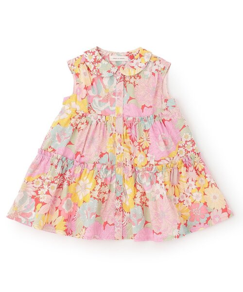 リバティファブリックス「Summers in the Sun(サマーズインザ・サン)」を使用したティアードワンピースです。 裾に向かってふんわりと広がるシルエットが、軽やかで女の子らしい印象を与えます。 ノースリーブと半袖の中間のようなフレンチスリーブは、腕まわりをすっきり見せつつ、上品な雰囲気を演出。 衿つきデザインできちんと感もあり、デイリーからお出かけまで幅広く活躍する一枚です。 内側にお名前を記入できるタグがついています。 ■親子リンクアイテム 初のMAMA&KIDS LINK ITEM 同柄の 「Summers in the Sun(サマーズ・イン・ザ・サン)」 シリーズで、姉妹や親子のお揃いコーディネートも叶うリンクアイテムです。 大人サイズ商品番号:1261240 キッズサイズ商品番号:1261229、1261316 【おすすめの着用時期は春夏シーズン】 【透け感】透けない 【生地の厚さ】普通 【伸縮性】なし 【裏地】あり 【ポケット】あり