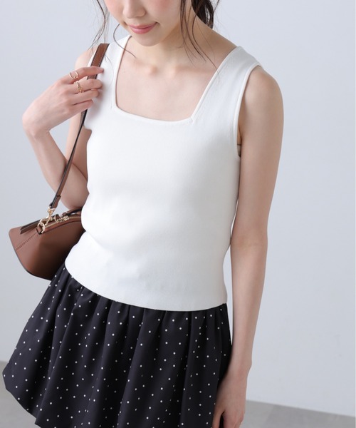 目の詰まったフラットでキレイな編地の総針スクエアネックのタンクトップ。 しっかりとした肉感とウエイトがあるので、インナーのあたりも少なく、1枚ではもちろん、シャツなどのインナーとしても着回せます。 首元は前後ともにスクエアネックのタンク型、着丈は短めにしているので、ボトムスにINしなくてもスタイルアップを狙えます。 シャリみと清涼感のあるドライタッチな風合いで目が詰まっているため、ホームクリーニングをしてもダレや毛玉、ダメージ感が最小限なのも嬉しいポイントです。 ★お洗濯の際は弱水流モードをお選びいただき、ネットに入れてお洗濯ください。 ※モデルの着用画像の場合、光の当たり具合により、実際の色味と異なって見えることがございます。色味は、商品単体の画像をご参照ください。 --------------------------------------------------- ◆商品のお気に入り登録◆ お気に入りアイテムの値下げ・再入荷・在庫1点などの通知を受け取ることができます。 ◆ブランドのお気に入り登録◆ 新商品や再入荷、セール、クーポン配布などお得な情報を受け取ることができます。 ---------------------------------------------------