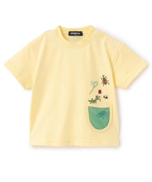 昆虫があしらわれている男の子らしさ満点のTシャツです。 虫かごから飛び出しているような刺しゅうが目を引きます。 ポケットの中まで見える遊び心たっぷりなデザイン。 吸水速乾と接触冷感機能を備えた、暑い季節のお出かけスタイルにぴったりな一着です。 内側にお名前を記入できるタグつき。 ※90サイズのみ肩開き。 【透け感】透けない 【生地の厚さ】普通 【伸縮性】あり 【裏地】なし 【ポケット】あり