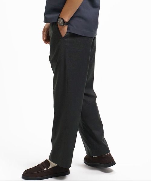 ウールライクな表情をイージーケアで楽しめるバギーシルエットのイージーパンツ ・ウールさながらの上質感を備えるポリエステル素材 ・ゆったりとしたバギーシルエットのリラックスフィット ・フロントに同色のワニロゴパッチを配置 Relax Fit