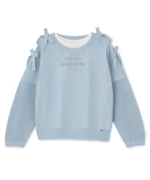 程よく透けるメッシュニットのプルオーバーと半袖Tシャツのセットです。 さりげないラメ感やさわやかなカラーリングが魅力。 肩についたリボンで可愛らしさをプラスしています。 トラックパンツからスカートまで、幅広いテイストのアイテムにマッチする一着です。 【透け感】透ける 【生地の厚さ】普通 【伸縮性】あり 【裏地】なし 【ポケット】なし