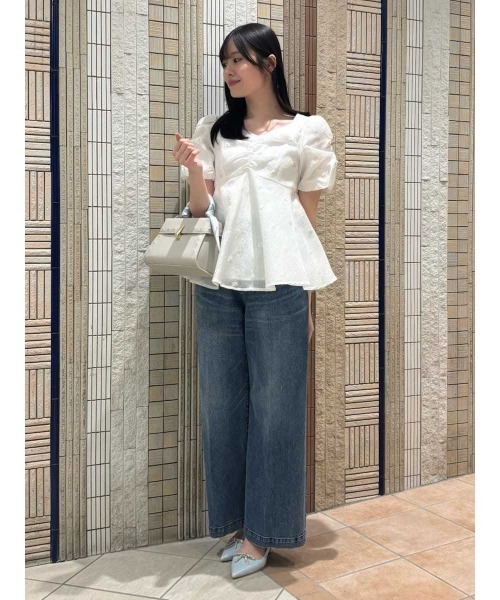 小花柄のジャガード素材にビーズをドットに配置したオリジナル素材のブラウス。 表面にほんのり艶と凹凸感があり、シルエットが綺麗に出る軽やかな素材です。 総裏仕立てなので縫い代が肌に当たらず着心地の良さも叶えます。また、袖はほんのり透けが出るよう裏地の種類を変える事で抜け感を出しています。 【おすすめ骨格タイプ】 ■骨格ウェーブ 透け感:袖のみややあり 裏地:あり 伸縮性:なし 光沢感:ややあり 生地の厚さ:薄手 ※照明の関係により、実際よりも色味が違って見える場合があります。 またパソコン・スマートフォンなどの環境により、若干製品と画像のカラーが異なる場合もございます。予めご了承ください。 商品の色味は、商品単品画像をご参照下さい。 ※商品画像はサンプルのため、色味やサイズ等の仕様に変更がある場合がございますので、予めご了承ください。
