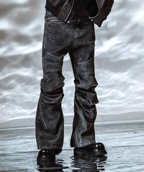 858006-452P 【NO ID.】Langwid Riders Pants / ラングウィッドライダースパンツ 2026 S/S NO ID. COLLECTION ブランド定番として支持されてきたライダースパンツをベースに、現代的なシルエットバランスと構造解釈を加えて刷新した次世代モデル。 “ラングウィッド=気怠く優雅に力が抜けた”というコンセプトを体現した、力感とリラックスを併せ持つ一本です。 太腿には立体的な蛇腹ディティールを配置し、ライダース特有の構造美を強調。 膝下にはドレープを生むパターン設計を取り入れ、従来のタイトなライダースとは異なる余裕あるニュアンスを表現しています。 フロントにはポケットと並行にZIPポケットを配置し、直線的なアクセントを付加。 背面左ポケットにはブランドイニシャル「N」を象ったオリジナルステッチを施し、さりげないアイコン性を持たせています。 膝下背面から裾にかけて配したファスナーによりシルエット調整が可能。 開閉によってテーパードからフレア寄りまで表情を変化させることができます。 ウエストはフロントを通常の前開きトラウザー仕様、背面をリブ仕様とするハイブリッド構造。 視覚的な整いと快適なフィット感を両立しています。 GRAYカラーは製品染め後にブリーチ加工を施し、奥行きのあるフェード表情を演出。 BLACKは構造ディティールを際立たせるミニマルなモード仕上げとなっています。 主な特徴: ・刷新された次世代ライダースパンツデザイン ・太腿の立体蛇腹ディティール ・フロントZIPポケット ・膝下ドレープ構造 ・背面「N」オリジナルステッチ ・膝下〜裾ファスナーによるシルエット調整 ・前開き+背面リブのハイブリッドウエスト ・GRAY製品染ブリーチ加工 おすすめシーン: ・モードスタイルの主役ボトムとして ・ライダースやロングトップスとの合わせに ・シルエット変化を楽しむスタイリングに ・ブランド性をさりげなく取り入れたいシーンに このライダースパンツは、2026年春夏の NO ID. コレクションにおいて、構造的ディティールと余裕あるドレープを融合し、現代的な脱力感をまとった新しいライダース像を提示する一本です。 モデル着用: GRAY / BLACK model:H182cm / size 1(Overseas model) BLACK model:H180cm / size 1(Japanese model) GRAY model:H170cm / size 1(Japanese model)