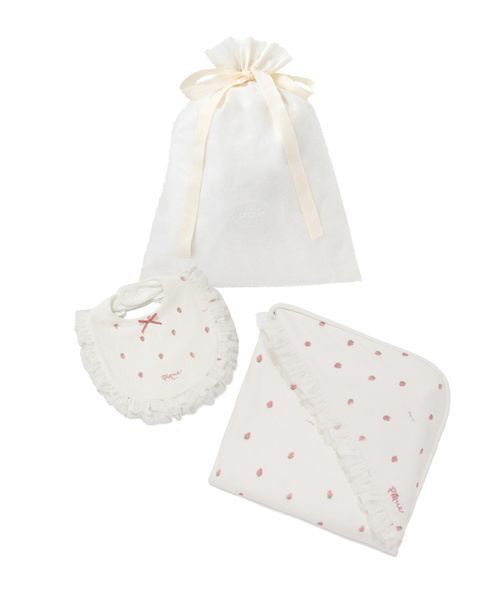 こちらの商品は衛生上の観点から返品・交換不可となります。 ※こちらの商品はラッピング済み商品となります。 ※ご一緒にギフト資材をご注文された場合は、資材を畳んだ状態で同梱させていただきます。 ※こちらの商品へは熨斗掛けできません。 ※その他商品とおまとめしてのラッピングはできません。 ※こちらの商品は商品袋を開封し、ギフト資材にラッピングした状態での販売となります。あらかじめご了承のうえご注文ください。 ※こちらの商品について、お客様ご都合でのご返品・ご交換は一切承りかねますので、予めご了承ください。 【ラッピング済み】ストロベリー柄チュールブランケット&スタイSETをギフト巾着にラッピングしてのお届けになります。(オフィシャルサイト、ウサギオンラインのみショッピングバッグ付き) 【セット内容】 KIDSストロベリー柄チュールブランケット(PKGG261460) チュールスタイ(PBGG261459) 【そのまま渡せるラッピング済みギフトセット】 【Design/Styling】 春が旬のストロベリー柄がキュートな、ギフトにもおすすめのシリーズです。コットンの柔らかなカットソー素材を使用したブランケット。チュールをあしらったロゴ刺繍入りのフードが付いており、お昼寝からお出かけのシーンまで幅広く活躍します。スタイはチュールのフリルをぐるりとあしらって華やかに仕上げました。ワンポイントで付けたストロベリー色のリボンとロゴ刺繍もポイントです。記念日の写真撮影や動画撮影にも映える1枚。 ※照明の関係により、実際よりも色味が違って見える場合があります。 またパソコン・スマートフォンなどの環境により、若干製品と画像のカラーが異なる場合もございます。予めご了承ください。 商品の色味は、商品単品画像をご参照下さい。 ※商品画像はサンプルのため、色味やサイズ等の仕様に変更がある場合がございますので、予めご了承ください。