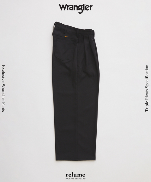 Wrangler SMU WRANCHER THREE TUCK PANTS 「WRANCHER/ランチャー」が、3タックの魔法で進化。バイヤーの情熱が結実した、ワイドスラックス。 カウボーイの正装用スラックスとして1960年代に誕生したWranglerの名品「ランチャードレスジーンズ」。 その完成された意匠をベースに、今の空気感を最大限に引き出すべくrelumeが型から別注をかけた一本が登場しました。 ■あえて“フレアさせない”潔いワイドストレート 本作最大のこだわりは、ランチャーの代名詞である「裾広がりのフレアシルエット」をあえて排し、「ストレートな落ち感」を追求。 フロントに配された贅沢な「3タック(トリプルプリーツ)」から裾に向かってストンと落ちる、大胆なワイドストレートシルエットを新構築。 フレア特有のクセを抑えることで、オーバーサイズのトップスやハイテクスニーカーとも完璧に調和する、極めて現代的なスラックスへと生まれ変わりました。 ■ドレスとワイドの黄金バランス 3タックが生み出す腰回りのボリューム感と、センタープレスの効いたストレートライン。バイヤーが理想とした「ワイドな穿き心地ながら、ランチャーらしい端正な立ち姿」を見事に実現しました。ルーズさがありながら、どこか上品で洗練された佇まいを約束します。 ■シワ知らず、手入れ知らずの素材 生地には、インラインでも定評のあるポリエステル100%ツイルを採用。 「洗えて、すぐに乾く」「シワになりにくく、センタープレスが消えにくい」というランチャー特有の圧倒的な利便性はそのまま継承。型崩れを気にせずガシガシ穿き込めるタフさは、まさに現代のワードローブに欠かせない要素です。 カジュアルに外しても、シャツでクリーンにまとめてもサマになる。 ランチャーの歴史を塗り替える、relumeが今穿いてほしい「一推し」の自信作です。 【Wrangler / ラングラー】 1897年ノースカロライナ州グリーンズボロでハドソンオーバーオールカンパニーに始まり、1943年にブルーベル社が誕生、1947年ブランドが正式にスタートしました。「カウボーイ&ウエスタン」がコンセプトです。ゆったりしたワークウェアをメインに扱うブランドが多い中、いち早くジーンズに防縮加工を取り入れ、当時全く新しいスタイルの「ジーンズ」を作り注目されました。30年代からハリウッドでウエスタンコスチュームのデザイナーとして有名だった、ベンジャミンリヒテンシュタイン=通称ロデオベンをデザイナーとして向かい入れ誕生し、ウエスタンスタイルに欠かせないブランドへと成長。 ********************** 裏地:なし 光沢感:ややあり 生地の厚さ:普通 ********************** 【スタッフ着用コメント】 《スタッフH》 身長:174cm/体重:64kg/体型:中肉中背/普段サイズ:M/着用サイズ:M サイズ感:ワイドシルエットですが、裾がフレアしていないストレート型なので、ボリュームのあるスニーカー合わせても足元が野暮ったくなりません。 素材感:ランチャー特有のさらりとしていて肌離れが良く、少し光沢があるので高級感があります。センタープレスが真っ直ぐストンと落ちるストレートラインは、穿きやすいシルエットです。 着心地:洗えてアイロンいらず、という実用性が最高です。バイヤーが「フレアさせずにストレートで穿きたい」という想いで作ったのが伝わる、今のトレンドに完璧にフィットする一本です。 ********************** 《画像についてのご注意》 ※照明の関係により、実際よりも色味が違って見える場合があります。 またパソコン・スマートフォンなどの環境により、若干製品と画像のカラーが異なる場合もございます。 ※商品の色味は、商品アップ画像をご参照ください。 《商品のお気に入り登録について》 「カートに入れる」または「予約する」右側のハートマークを押していただくと、 再入荷、残り1点、セールなどの通知を受け取ることが出来ます。 本体:手洗い可能