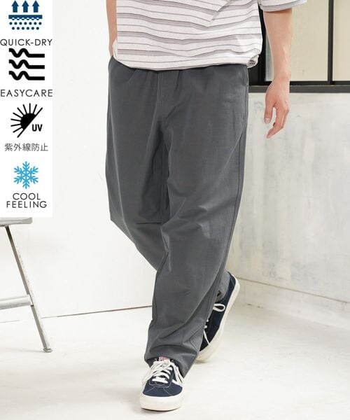 予約期間中ポイント2倍!! ーーー POINT [1] 多機能素材かつ、イージーパンツ仕様で日常使いしやすい [2] リネン混&接触冷感で春夏にピッタリのアイテム [3] 太過ぎず細すぎずのシルエットで合わせるトップスを選ばない ーーー [fabric] 吸水速乾、イージーケア、UVカット、接触冷感と多機能を備えたリネン混素材を使用。 クリーンかつ機能性がありながらも天然素材の雰囲気も持ち合わせた素材。 [design] レギュラーシルエットで仕立てたイージーパンツデザイン。 太過ぎず細すぎずのバランス感で汎用性の高いシルエットに。 [styling] きれいなシャツを合わせればクリーンなスタイリングに。 カーディガンやデニムジャケットの合わせなどもおすすめ。 ※屋外での撮影画像は光の加減で実際の商品より明るく見えたり、風合いが異なって見える場合がございます。 商品の色味はスタジオ撮影の画像を参考にして下さい。