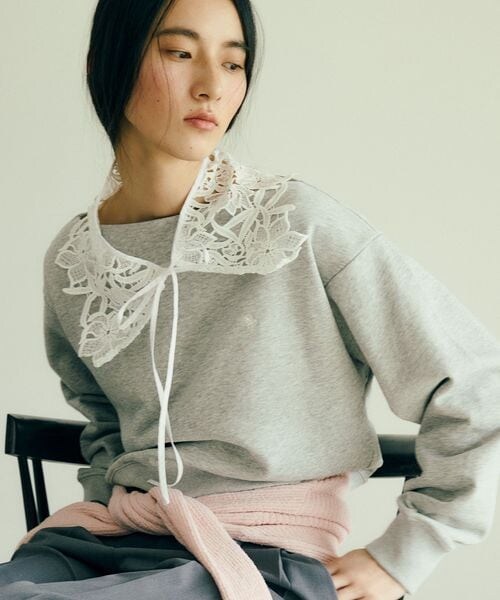 【2026 Spring】【26SS】 <POINT> ・ボートネックにもワンオフショルにもなるデザインで女性らしく着て頂けます。 ・柔らかく着心地のいい裏毛の素材をセレクトしています。 ・ネックの仕様を変更しより女性らしく着れるようアップデートしました。 【デザイン・シルエット】 メンズライクな裏毛のスウェットを女性らしく着れるようなオフショルデザインのスウェットです。 よりレディーな印象で着れるようネックのフライスを共地に変更しました。 【素材】 薄すぎず暑すぎない程よい肉感の裏毛素材。 【カラー】 ライトグレー(杢グレー)、キナリ、ネイビー、ピンクの葉春らしい着回しの効く色展開。 ピンク(63):WEB店舗&ルミネ店舗(北千住店・立川店・大宮店)限定カラー <刺繍カラーについて> キナリ(16):ネイビー その他のカラーは全てホワイトになります。 【おすすめのスタイリング】 1枚で着たり、シャツとレイヤードして着たり色々な着方を楽しんで頂けます。 ボリューム感のあるコロンとしたシルエットのスウェットで、スカートスタイルでも、パンツスタイルにも相性ぴったりです。 ----------------------------- 裏地:なし 光沢感:なし 透け感:なし 伸縮性:あり ボタン:なし 生地の厚さ:普通 季節:春、秋 ----------------------------- 【モデル着用サイズ】 身長:160cm 着用サイズ:F ※ピンク(63)は、WEB店舗とルミネ店舗(北千住店・立川店・大宮店)限定のお取り扱いとなります。 ※画像の商品はサンプルです。 実際の商品と仕様、加工、サイズが若干異なる場合がございます。 ※画像によっては実際の色味と異なる場合があります。正しい色味は生地アップ画像をご確認ください。