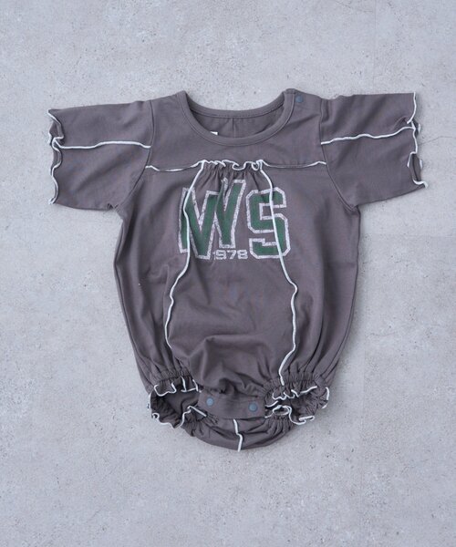 かすれロゴにメロウ仕上げのテイストMIXがアクセント 綿100%で着心地◎可愛いだけじゃない実用性ロンパース ■デザイン 1枚でコーデが完成する、可愛さと着心地を兼ね備えたロンパース! 綿100%の素材を使用した優しい肌触りで、デイリーに活躍するリラックス感が魅力◎ フロントにはかすれた風合いのロゴプリントをON。 甘めなメロウの切り替えやフリルと合わせることでラフ過ぎない丁度いいバランスに。 足の付け根には小さなフリルをあしらい、さりげなく可愛らしさをプラス。 ゴム入りでやさしくフィットするので動きやすく、元気に動くお子様にも安心の着心地です。 首元はゆったりとしたクルーネック仕様で着脱らくちん。 股下にはスナップボタンが付いているため、おむつ替えもスムーズです◎ ■スタイリング ロゴプリントと配色デザインがアクセントになったロンパースは、1枚で着るだけでお出掛けコーデに! デリケートなお子様の肌に優しく、汗ばむ暑い季節にも嬉しい綿100%の生地でそのまま着てOK◎ 落ち着いた印象のチャコールグレーに、明るく元気な雰囲気のイエロー。 デイリーからお出掛けまで幅広いシーンで着回せるアイテムです! ■お手入れ方法 洗濯:液温は40 ℃を限度とし、手洗いができる アイロン:不可 タンブル乾燥:不可 ・・・・・・・・・・・・・・・・・・・・・・ 透け感:なし 裏地:なし 伸縮性:なし 光沢感:なし 生地の厚さ:普通 ・・・・・・・・・・・・・・・・・・・・・・ ▼気になる商品をお気に入り登録 ハートをクリックして《お気に入り登録》がオススメです! 入荷情報や、クーポン情報が通知されるようになります。 ※画像の商品はサンプルを使用しております。実際の商品と若干の仕様が変更になる場合がございますので、予めご了承の上ご注文くださいますようお願いいたします ※屋外の光や照明の当たり具合で、実際の商品の色味とカラー別画像の色味に若干の違いが発生する場合がございます。詳細画像と併せてご確認の上、ご注文いただきますようお願い致します。 ※独自のタイムセールなどの施策により、実店舗と価格差が発生する場合がございます。 ※実際の店舗在庫につきましては、各店舗に直接お問い合わせください。