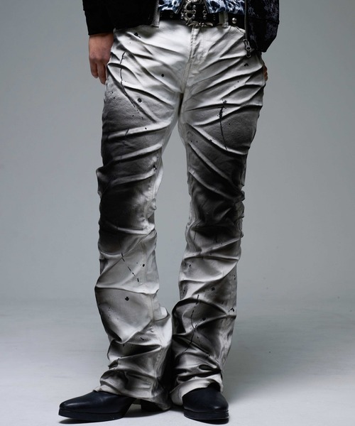 『FUGA/フーガ』より、立体加工フレアデニムパンツの入荷です。 2種の顔料コーティングとシワ加工により、他には無い立体感を出した一本。 さらにラメペイントを施し、よりエッジの効いた雰囲気に。 どの角度から見ても無駄のない、FUGAならではの計算された美脚シルエットも特徴です。 ※タイトめなシルエットですが、ストレッチの効いた生地感なので履きやすくなっております。 【FUGA】 創造的で独創的。デザイナーのエゴイスティックな感性を根底に表現されたコレクションを展開。 【ブランドについて】 2004年、ファッションの聖地原宿にて誕生。圧倒的なカリスマ性で一世を風靡。 その後渋谷109-➁をはじめ全国主要都市に展開。 2019年のブランド休止を経て、2025年に満を持して復活。 平成ファッションを思わせる当時の名作は勿論、今の感性を落とし込んだ独創的なアイテムをリリースします。 【お買いものをよりお楽しみいただくには!】 ▼商品のお気に入り登録 ラスト1点の通知、完売カラーの再入荷通知や、セールの通知などを受け取ることができます! ▼ブランドのお気に入り登録 新作商品や再入荷など、ブランドのお得な情報をいち早いタイミングで受け取ることができます!
