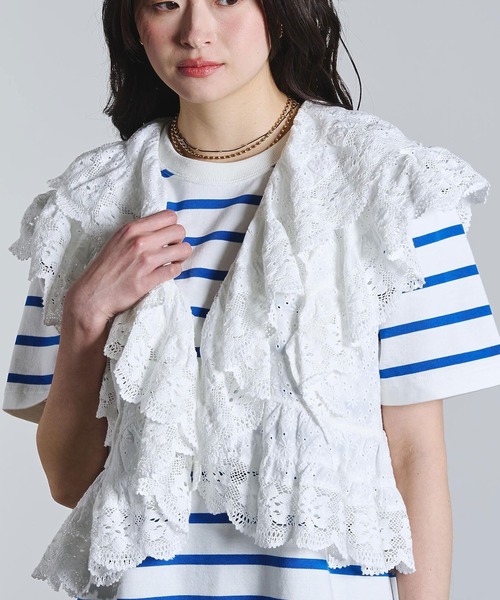 春らしいコットン素材で楽しむ、オールレースベスト ・アイレット刺繍のコットンレース×トーションレース ・製品洗いのナチュラルでヴィンテージライクな風合い ・衿周りから裾までふんだんに入ったフリルディテール ・一枚で主役になる華やかなデザイン ・同素材のブラウス(品番:205261014001)も展開 ・ホワイト、ブラックの2色展開 商品特性 透け感 : あり 伸縮性 : なし 生地の厚さ : 普通 裏地 : なし スタッフレビュー 製品洗いの風合いで程よくこなれた表情になり、馴染みやすい優しいニュアンスがあります。 衿周りのフリルが顔周りに華やぎを添え、コーディネートの主役になります。 タンクトップや薄手のトップスに重ねるだけで春夏のスタイリングのアクセントになります。 mag.by c 「自由なスピリットを纏った新時代のヒッピースタイル」 装いを通して感じる高揚感、洋服がもたらすポジティブなエネルギー。 プレイフルな気持ちで「私の好き」を形にしていきます。 鮮やかな色彩・クラフト技術を取り入れた多国籍なカオスさ、そして都会的でモードな一面を共存させたブランドです。 お気に入り登録 ・商品のお気に入り登録 再入荷・残り1点・セールの通知を受け取ることができます。 ・ブランドのお気に入り登録 新商品・再入荷/・ショップおすすめトピックスなど、ブランドの情報を受け取ることができます。 取扱注意事項 ・濃色の物は、汗や雨等湿った状態での強い摩擦によりほかの物に色移りすることがあります。 ・長時間洗濯液に浸けたり汗等で濡れたまま放置しないで下さい。 ・濃色のものは色落ちするおそれがありますので淡色のものとは分けて洗って下さい。 ・無蛍光洗剤を使用して下さい。 ・タンブル乾燥はお避け下さい。 ・洗濯の際はネットを使用して下さい。 ・素材の特性上、洗濯により多少の縮み、斜行が生じることがあります。 ・形を整えてから干して下さい。 ・アイロンはあて布を使用して下さい。 ・ほかのものとの引っ掛かりにご注意下さい。 モデルの着用画像の場合、光の当たり具合により、実際の色味と異なって見えることがございます。 色味は、商品生地の画像をご参照ください。