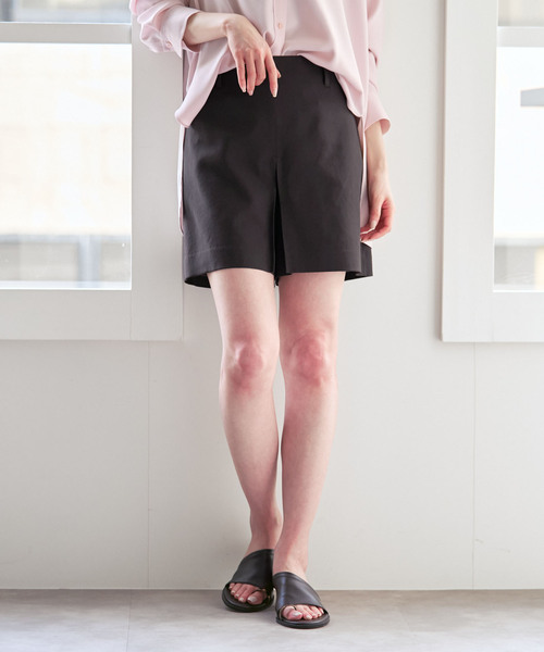 スカートライクなルックスが特徴で気軽に穿けるショートパンツ。 控えめに広がる台形のシルエットが脚のラインをキレイに映し出し、膝上の絶妙な丈感はシルエットと相まって細見え効果も期待できます。 ウエストにはベルトループ付きで小技を効かせることも可能。ロングブーツと合わせたり、タイツやソックスのレイヤードで足元のオシャレを楽しめます。 ********************** 透け感:なし 裏地:あり 伸縮性:なし 光沢感:なし 生地の厚さ:普通 ********************** ※取り扱いについては、商品についている品質表示でご確認ください。 ※こちらの商品は、NOBLEでの取り扱いになります。 直接店舗へお問い合わせの際はNOBLE店舗へお願い致します。 ※照明の関係により、実際よりも色味が違って見える場合があります。 またパソコン・スマートフォンなどの環境により、若干製品と画像のカラーが異なる場合もございます。 ※商品の色味は、商品アップ画像をご参照ください。 本体:手洗い可能