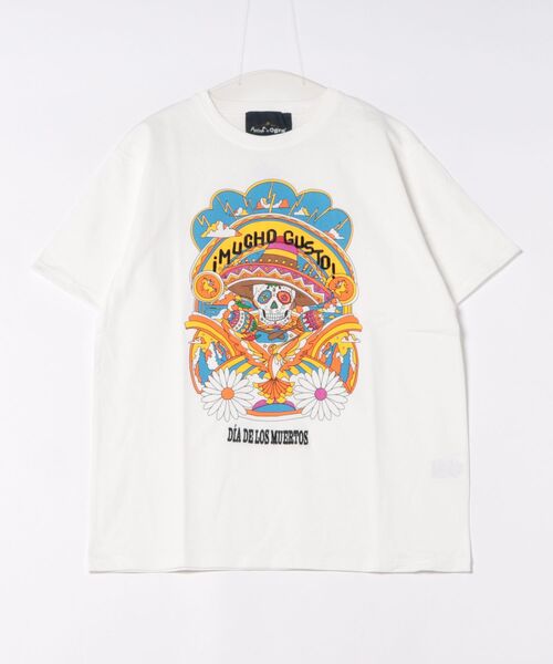 【 Amina×grn 】地球と遊ぶ、弾ける個性 死者の日(Dia de los Muertos ディア・デ・ロス・ムエルトス)をテーマにデザインしたTシャツ。 しっかりとした生地感の綿天竺を使用。 古着風のヒッピーアートなプリントと、文字などの一部分に刺繍を重ねたデザインが目を惹きます。 ゆったり着られるサイズ感で男女問わずユニセックスでご着用いただけます。 GOOD FIEELDING FIELD(野、山)+FEELING(気分)を組み合わせた造語。 自然に楽しめる、自然で楽しめる。そんな見た目とファンクション(機能)を目指したコラボレーションネームです。 Amina(アミナ) Aminaは「自分らしく生きていく価値」多様な文化や人々の違いを超えて寄り合う「笑顔で繋がっていく価値」を伝えていきます。人生は一度きり。世界はまだ見知らぬ未知にあふれている。自分らしく、楽しく、個性は自由。そのコミュニティが集う場所「チャイハネ」。これからもチャイハネは『フォークロア世界への旅』を続け、100年続くブランドを目指していきます。 grn(ジーアールエヌ) 昔はファッションに夢中だった人でも、時間が経ち環境が変わると、だんだんおしゃれをすることを意識しなくなってしまうもの。そんな人達にファッションの楽しさを思い出してもらえるきっかけにgrnはなりたい。 ※こちらの商品は1点1点職人による手作りとなります。その為、形や色合いなど若干異なる場合がございます。あらかじめご了承ください。 Amina Collection Co.,LTD.
