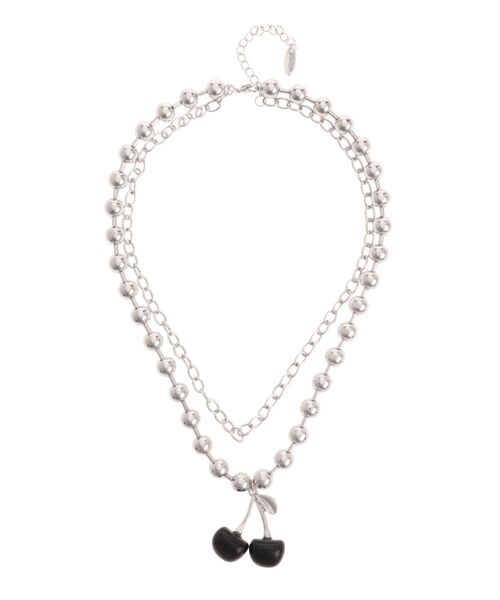 ボールチェーンとチェーンをレイヤードした、エッジの効いたネックレス。 キャッチーなチェリーモチーフが、コーデに遊び心をプラスします。 メタリックな質感で甘くなりすぎず、jouetie(ジュエティ)らしいストリート感のある仕上がりに。 Tシャツやシャツに合わせて、スタイリングのポイントにしたいアイテムです。