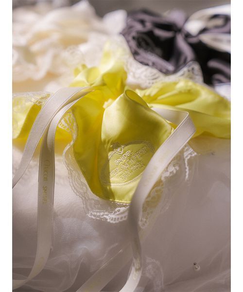 【Chacott(チャコット)とSNIDEL(スナイデル)コラボレーション第3弾!】 【コーデを格上げする、華やぎインパクトシュシュ 】 【Design/Styling】 程よい光沢感のある生地にスカラップレースを重ねたフェミニンなシュシュ。 オリジナルエンブレム刺繍とダブルネームリボンで特別感を演出。 リボンは結んでアレンジも可能です。 【Fabric】 軽やかで程よいハリのある素材を使用。 アイボリー、ブラック、イエローの3色展開。 ※照明の関係により、実際よりも色味が違って見える場合があります。 またパソコン・スマートフォンなどの環境により、若干製品と画像のカラーが異なる場合もございます。予めご了承ください。 商品の色味は、商品単品画像をご参照下さい。 ※商品画像はサンプルのため、色味やサイズ等の仕様に変更がある場合がございますので、予めご了承ください。