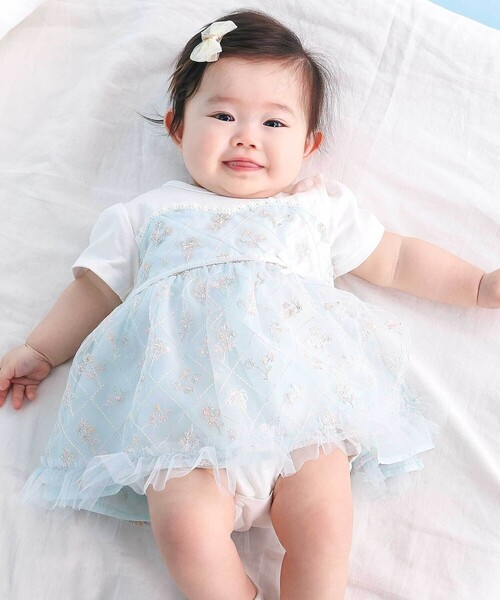 -26SS- チュールの華やかさと裾のフリルがとびきり可愛い、女の子ベビー用のカバーオール。 ■デザイン 胸元にはきらっと輝くスパンコール入りのチュールを重ね、動くたびふわっと揺れる特別感のある仕上がりに。 ウエストの切り替え部分には左側に小さなリボンをちょこんと添えて、赤ちゃんの可愛さをさらに引き立てます。 裾にもフリルをあしらい、細部までガーリーな魅力がいっぱい。 甘いピンク系と、爽やかなブルー系の2色展開で、どちらも赤ちゃんにぴったりのやさしい印象です。 お出かけの日にも、特別な記念日にもぴったり。赤ちゃんの“かわいい瞬間”をより華やかにしてくれるカバーオールです。 ■素材/機能 肌ざわりの良い天竺を使用し、赤ちゃんが快適に過ごせる心地よさを大切にしています。 着脱のしやすさにもこだわり、左側が大きく開く仕様なので着せる時もスムーズ。 股下だけが開くデザインなので、オムツ替えも楽ちんです。 ▼お揃い 1801-82550:ワンピース 1837-82638:カバーオールベビー 26春夏アイテム 【Sparkle Treasure】 日々の生活の中できらりと光る宝物のようなお洋服をイメージしたコレクション。 【2026 SPRING SUMMER / Wishing you joy-喜びが訪れますように-】 すてきな一日を願う気持ちをお洋服に込めて。 誰かを想うやさしさと、あたたかなぬくもりを感じながら、毎日が小さな幸せで満たされますように。 優しくてあたたかなイメージのコレクション。 【SLAP SLIP(スラップ スリップ)】 ~子どもの欲しいをカタチに~ ヨーロッパのこどものように 子どもらしい今しか着れないナチュラルなかわいさを提案 どこか上品で清楚感漂うフレンチカジュアルは いつものコーディネートをさりげなく格上げ