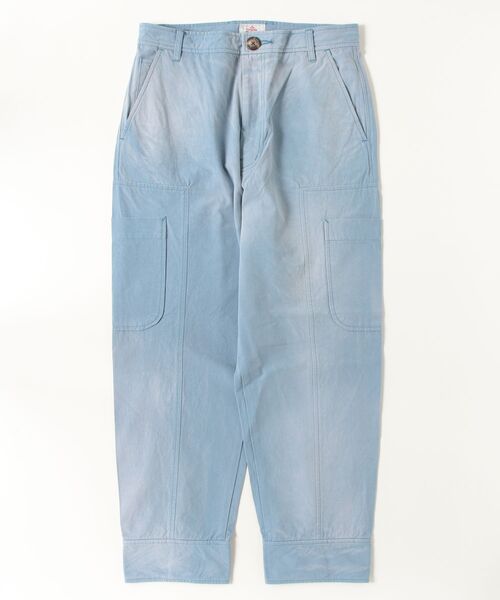 グラデーションのピンクが映える「SPRAY WORKERWEAR トラウザー」。手作業によるブリーチにより不均等なカラーリング、切り替えポケットやアジャスタブルな裾のボタン仕様などがヴィンテージワークウエアを彷彿させます。