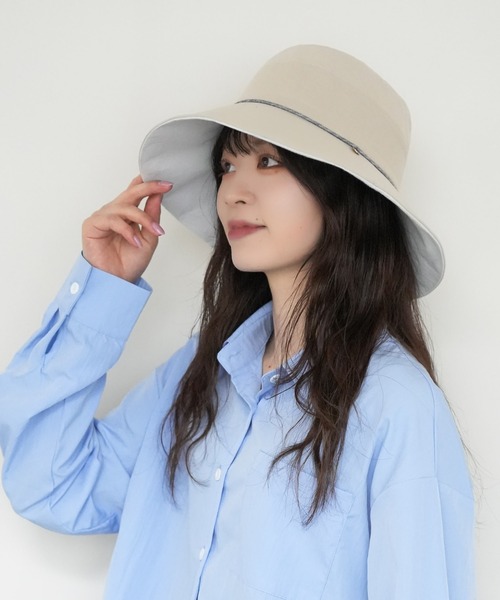 つば裏のホワイトカラーが顔まわりを明るく見せてくれる、上品なバイカラーデザインのUVハット。 シンプルなブラックベースに細いラインデザインをあしらい、 大人っぽく洗練された印象に仕上げました。 つば裏が明るいカラーになっているため、顔映りがよく、 コーディネートにも軽やかなアクセントをプラス。 日差しの強い季節でも、華やかな印象でかぶっていただけます。 つば部分は遮光率99%以上で、紫外線対策にも優れた仕様。 しっかりと日差しをカットしながら、おしゃれにUVケアができます。 吸水速乾素材を使用し、汗ばむ季節でも快適なかぶり心地。 さらに抗菌防臭機能付きで、清潔にお使いいただけます。 洗濯可能でお手入れも簡単。内側にはサイズ調整機能付きで、 お好みのフィット感に調整できます。デイリー使いからお出かけ、 リゾートスタイルまで幅広く活躍する機能性とデザイン性を兼ね備えたハットです。