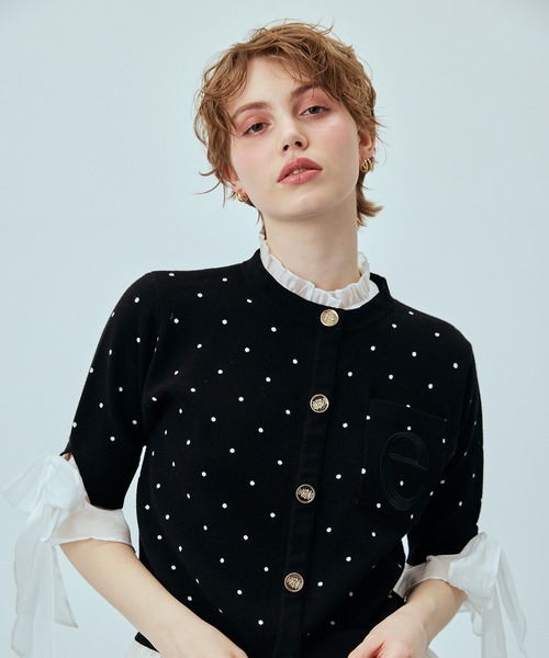 きちんと感と遊び心を纏う、大人気Aattachedシリーズ。 【Design】 コンパクトなドット柄のニットカーディガンに、シャツスリーブをドッキングした主役級トップス。 程よくボリュームのあるスリーブと配色カフスがアクセントになり、フェミニンな印象を引き立てます。 フロントのゴールドボタンが全体を引き締め、上品さをプラス。 【Styling】 ミニスカートと合わせてとことんレディに、 スラックス合わせで甘さを程よく抑えた大人スタイルもおすすめ。 トップスとしても羽織としても着用でき、スタイリングの幅が広がります。 【Fabric】 柔らかなニット素材と、軽やかなドットシャツ地を使用。 異素材のコントラストが、洗練された印象を演出します。 厚み:□薄手 ■普通 □厚手 透け感:■なし □あり 伸縮性:□なし ■あり 裏地:■なし □あり 注意:お使いのモニターによって、カラーが違って見える場合がございます。 ※素材・仕様は一部変更になる場合がございますので予めご了承ください。 ★《お気に入り登録》でお得な情報がいっぱい★ ・「商品のお気に入り登録」で再入荷通知や、ラストの通知、セール通知も受け取ることができます。 ・「ブランドのお気に入り登録」で新商品や再入荷など、お得な情報を受け取ることができます! 【eimy istoire/エイミーイストワール】 女性はみんな綺麗になりたい だからお洒落が大好きでやめられない そんな女性に贈る最高に美しい物語 メーカー品番:1126211704
