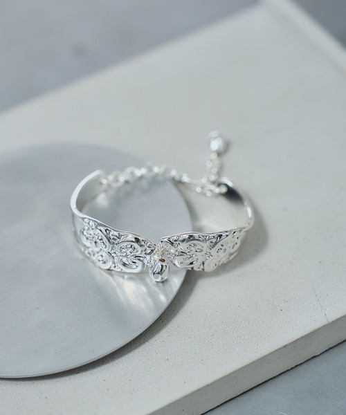 ーーー ビンテージ感のある透かし彫りデザインのメタルバングル ーーー point □ビンテージ感のあるデザインで重くなりすぎず華やかな印象 □曲線のラインで存在感があり、女性らしい印象 □2つのパーツを組み合わせており動きのあるアクセントに □チェーンで調節可能な為、着脱が簡単にできる styling 繊細で華やかなデザインなので結婚式の二次会やパーティなどのドレスアップスタイルにオススメです。 シンプルなTシャツと合わせても洗練された雰囲気になるのでデイリー使いもしやすいアイテムです。 ※加工を施した画像を使用しております。 実物と色味が異なる可能性があるため、色味は詳細後ろにある生地寄り画像を参考にお願いいたします。 あらかじめご了承下さい。