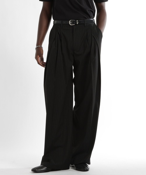 ーーー 涼やかに装う、至高の落ち感。縦の美学を追求した冷感ウールライク・トラウザー。 ーーー DESIGN 「深めタックで魅せる、美脚ワイド」をコンセプトに、縦のラインを極限まで強調したワイドストレートシルエット。 フロントに深く施されたディープタックが、ウエスト周りに立体感を生み出すとともに、視線を縦に流すことで圧倒的な脚長効果を演出します。 裾に向かってストンと落ちるストレートラインは、リラックス感がありつつも、決して崩れすぎない上品な佇まいをキープ。 生地の作り込みによって実現したHAREオリジナルの品ある発色は、同素材のジャケットとのセットアップにより、ビジネスからカジュアルまでシーンを選ばず、統一感のある洗練されたスタイリングを完成させます。 MATERIAL ウールのような気品ある目面と、不快感を劇的に軽減する機能性を両立した素材を採用。 レーヨンを混紡することで、ウール特有の上品な光沢感を再現しつつ、しなやかで軽やかな肌触りと扱いやすさを実現しました。 最大の特徴は、生地の組織そのものを作り込むことで付与された接触冷感機能です。 穿いた瞬間から肌に抜けるような涼しさを感じられ、汗ばむ季節でもベタつきを抑えて常にドライな着心地を維持。 機能美と意匠美が融合したこのファブリックが、夏の装いに快適さと優雅さをもたらします。 SET ITEM セットアップ対応ベストはコチラを検索→【652746】 セットアップ対応ジャケットはコチラを検索→【652745】 ※サンプルにて撮影をしておりますので、実際の商品とは仕様や加工・サイズ等が若干異なる場合がございます。 ※屋外の光や照明の当たり具合で、実物と色味が異なって見える場合がございます。詳細画像の色味をご確認ください。 なお、商品の色や質感を出来るだけ忠実に再現するよう心掛けておりますが、パソコンなどの環境により、実物と若干異なる場合がございます。 ※写真を許可無くコピー・転用することは固くお断りします。